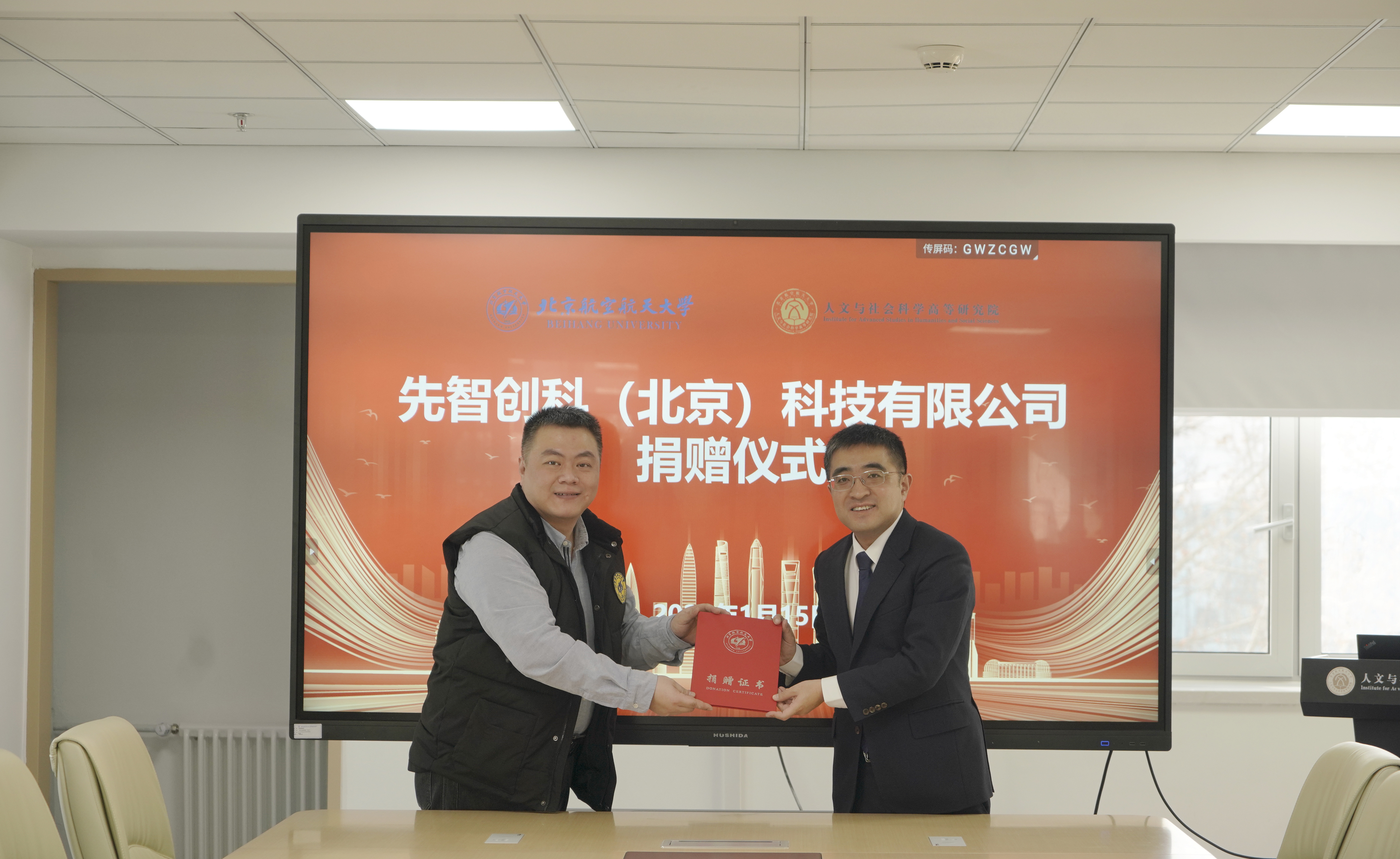 近日,先智创科(北京)科技有限公司捐资助力北航高研院学科建设、人才培养及通识教育发展。2026年1月15日上午,捐赠仪式在学院路校区9号楼401举行。91科技集团董事长许泽玮、副总裁苏毅,校友联络发展处处长、校友会秘书长张慧渊,校教育基金会副秘书长黄方,高研院部分教师参加捐赠仪式。仪式由高研院党委书记何情主持。