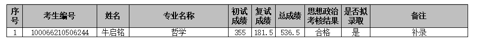 备注:若有考生放弃拟录取资格或名额调整,则依次递补拟录取。