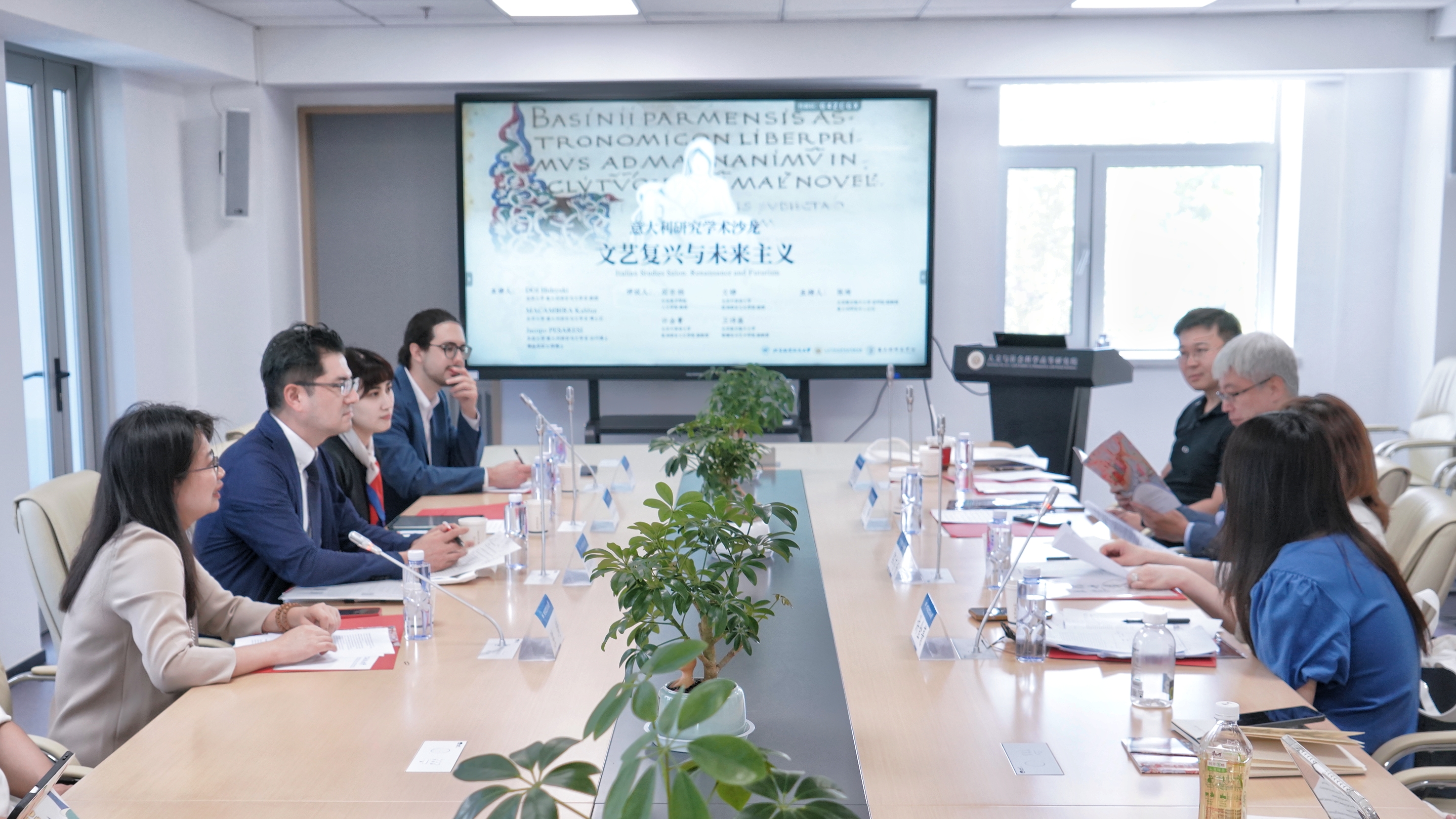 6月7日,意大利研究学术沙龙“文艺复兴与未来主义”在北航学院路校区9号楼401会议室成功举办。此次沙龙由北航人文与社会科学高等研究院意大利研究中心主办,来自东京大学的DOI Hideyuki教授、MACAMBIRA Kahlua博士和Jacopo PESARESI博士围绕意大利文艺复兴时期人文主义诗歌、未来主义先锋艺术摄影及跨国学术合作网络的构建等主题展开汇报。本次沙龙的评议人由中央美术学院人文学院副院长邵亦杨教授,北京外国语大学欧洲语言文化学院文铮教授、许金菁副教授,北京航空航天大学新媒体艺术与设计学院卫诗磊副教授担任。北航人文与社会科学高等研究院副教授、意大利研究中心主任陈绮主持本次活动。